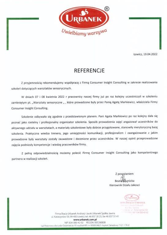 Z przyjemnością polecamy firmę Consumer Insight Consulting oraz Panią Agatę Markiewicz, jako kompetentnego partnera w realizacji szkoleń z zakresu analizy sensorycznej żywności.